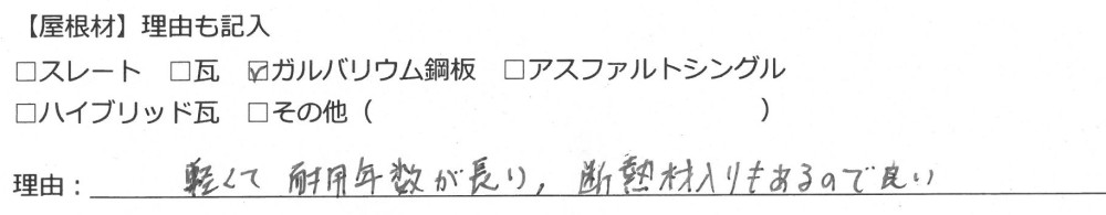 ガルバリウム鋼板屋根を選んだ社員からは