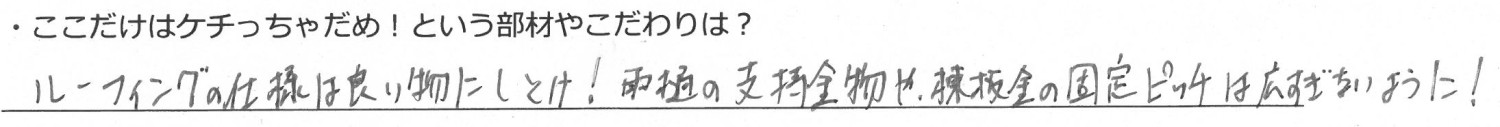 -ルーフィングの品質、構造材の仕様、棟板金・雨樋のピッチなど、見えない部分にも気を付ける