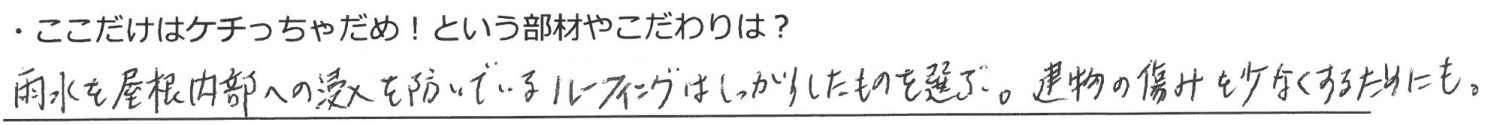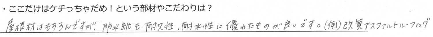 品質によってメンテナンス周期や家の寿命に大きく差が出るため、ルーフィングにはこだわるべきという意見が多く上がりました。