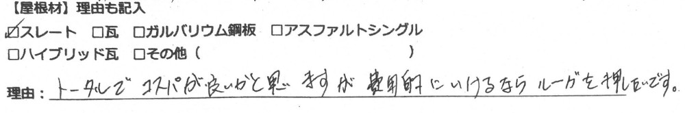屋根材は以下の結果が出ました。
