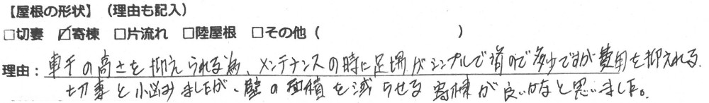 「軒の高さを抑えられるため、メンテナンスの時に足場がシンプルで費用を抑えられる」
